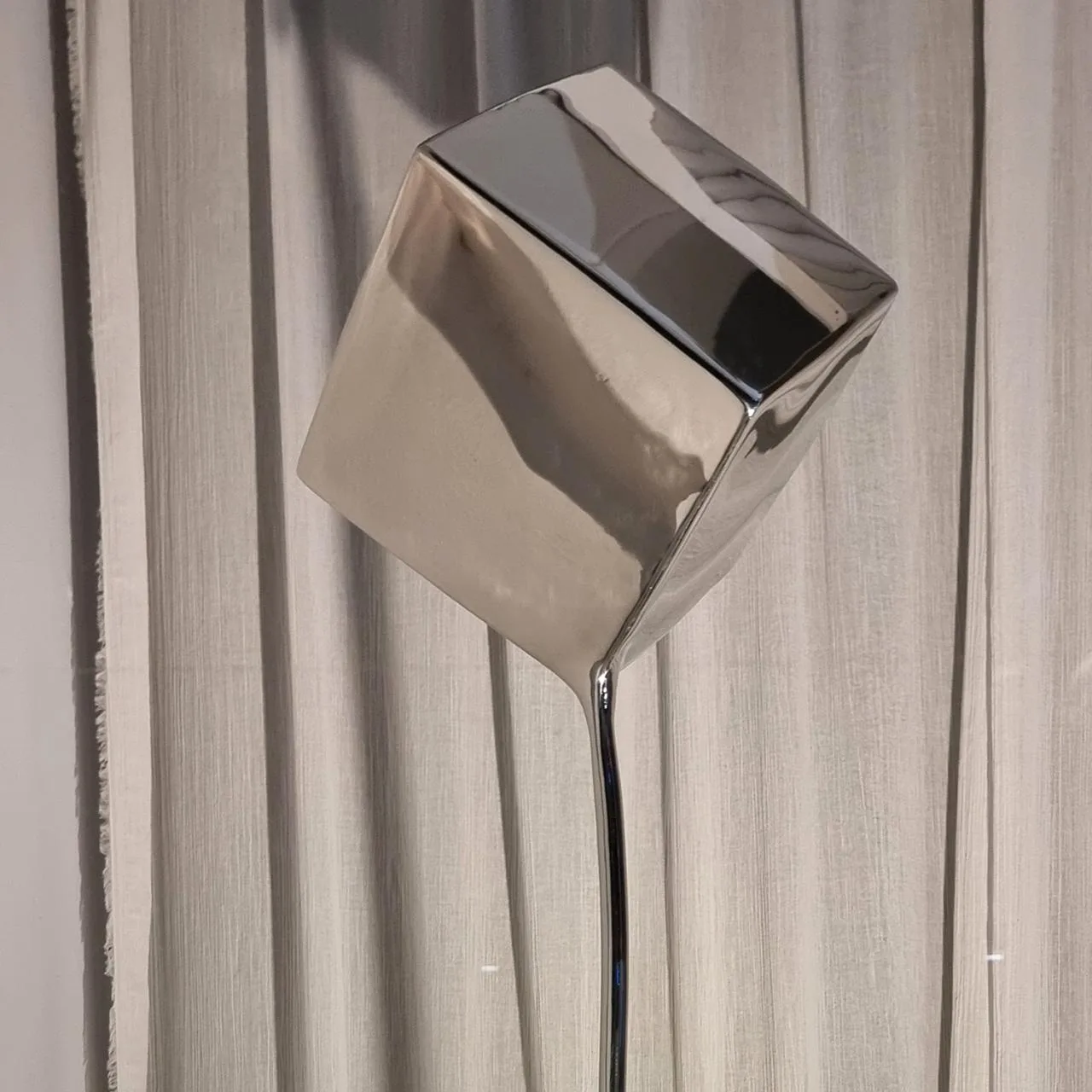 The sculptures are a transformation – solid becomes liquid, static begins to flow. Flowing from one state to another, what is the reality? In a quantum physics world both states coexist in parallel realities.