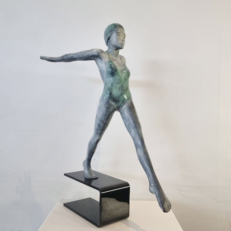 I am an Australian sculptor and have worked in a variety of mediums over the years, including marble, but more recently I have concentrated on sculpting in clay & casting in bronze. My work is represented in ten galleries in Australia and can be found in private collections in USA, UK, Asia and Europe. I now work almost entirely in bronze as I find the initial process of sculpting in clay enables me to get great definition & subtlety. I have a great admiration for the medium of bronze because of its intrinsic beauty and its timelessness. With a background as a physiotherapist I’ve always had an appreciation of the human form. When sculpting, I draw on family and friends as my models. The process involves taking a multitude of photos from all angles for accuracy of the lines of a pose. I endeavour to capture the character of the individual; in the end it is the essence of the person that is most important for me to translate into the work.Â