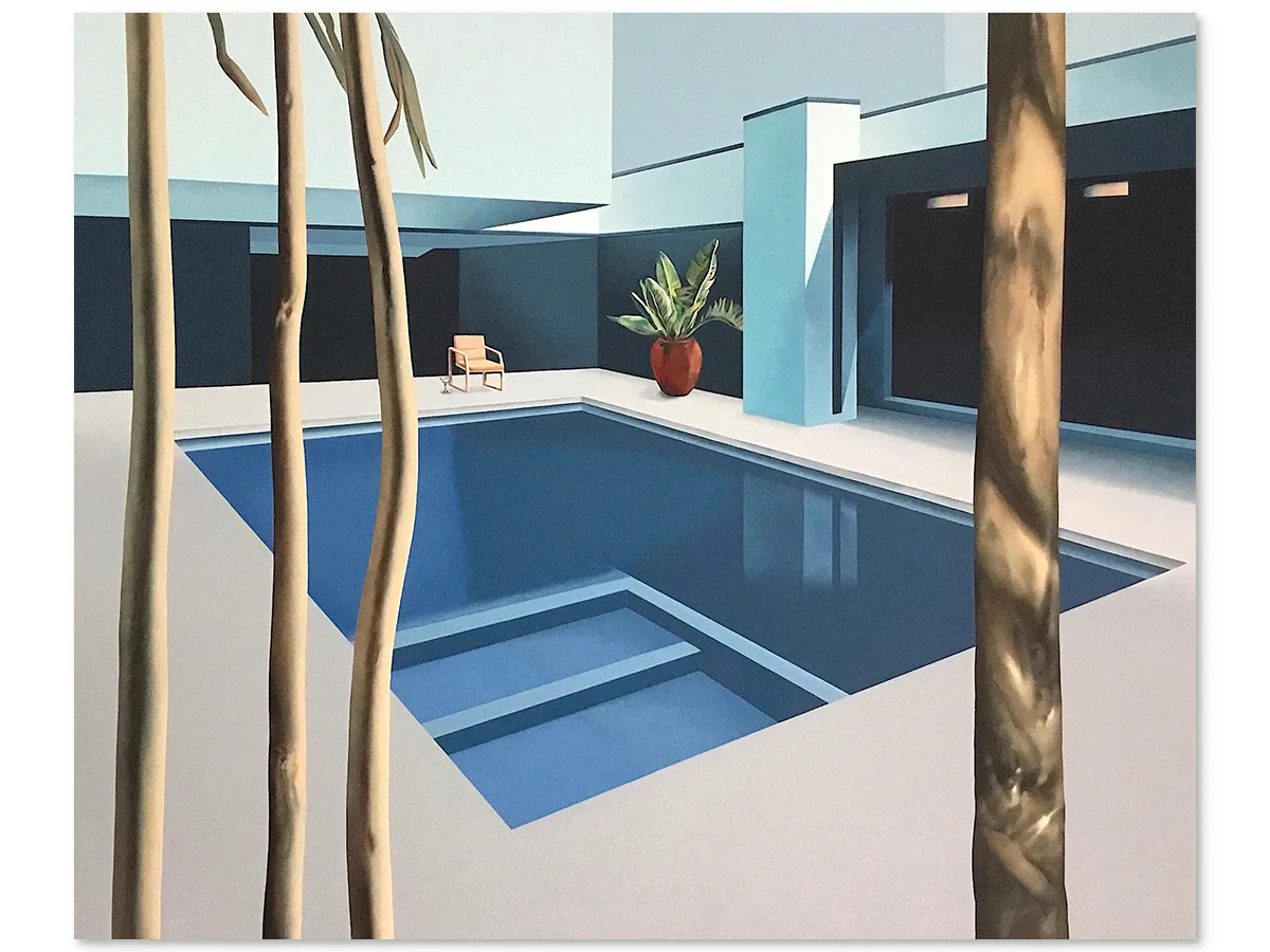 Educated in art and design in Melbourne in 1972, Coleman has developed a practice focused on composition, spatial tension and the quiet atmosphere of suburban and designed landscapes. His recent works frequently depict swimming pools and architectural elements set against natural surroundings, highlighting the interplay between human design and the unpredictability of nature.