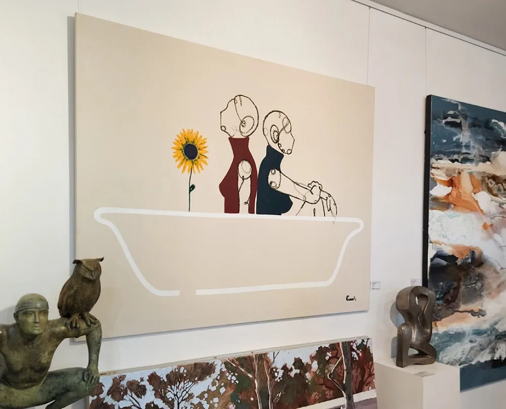I use acrylics is because of their clean texture and homogeneous look, it creates the perfect base to play with oil sticks which create contrast with their thick texture and quick flow, they let you draw in a very expressive way. Each trace needs a quick pace to be fresh and continuous, they fix to the canvas and you just keep on going, there is no other way than moving forward. The need to draw is what has become essential in my latest works, I feel it connects my mind directly with the canvas and releases the lines in a more essential and pure way, in the end, being minimal, strong, and honestly becomes a need if I want to express situations I’ve got hidden inside